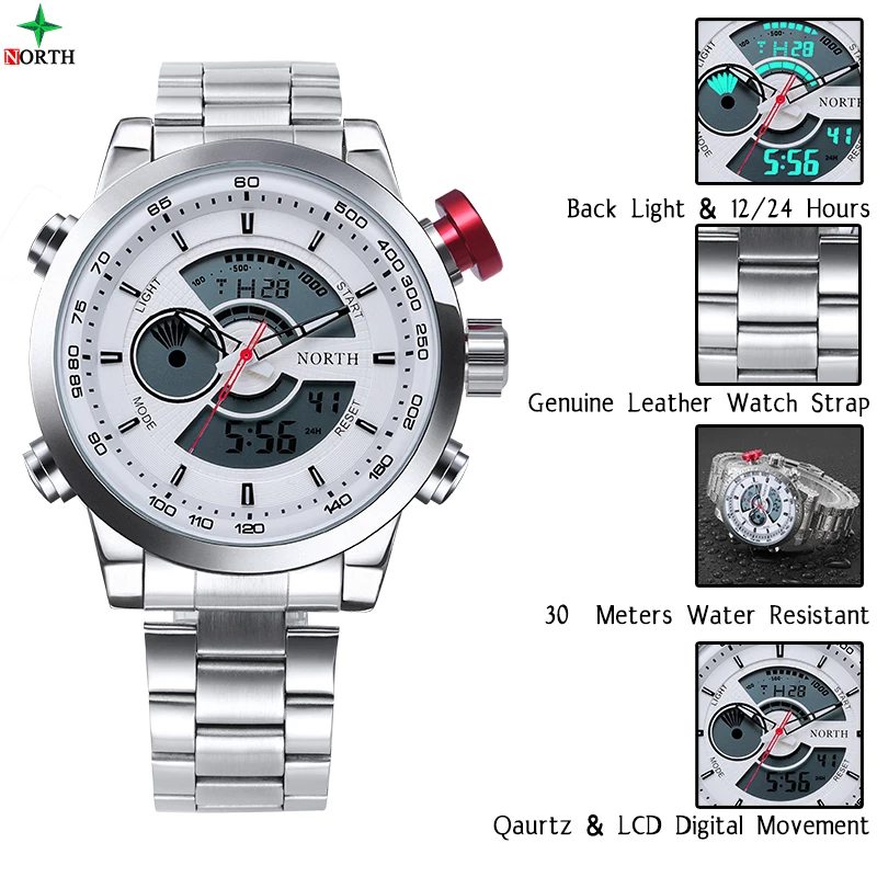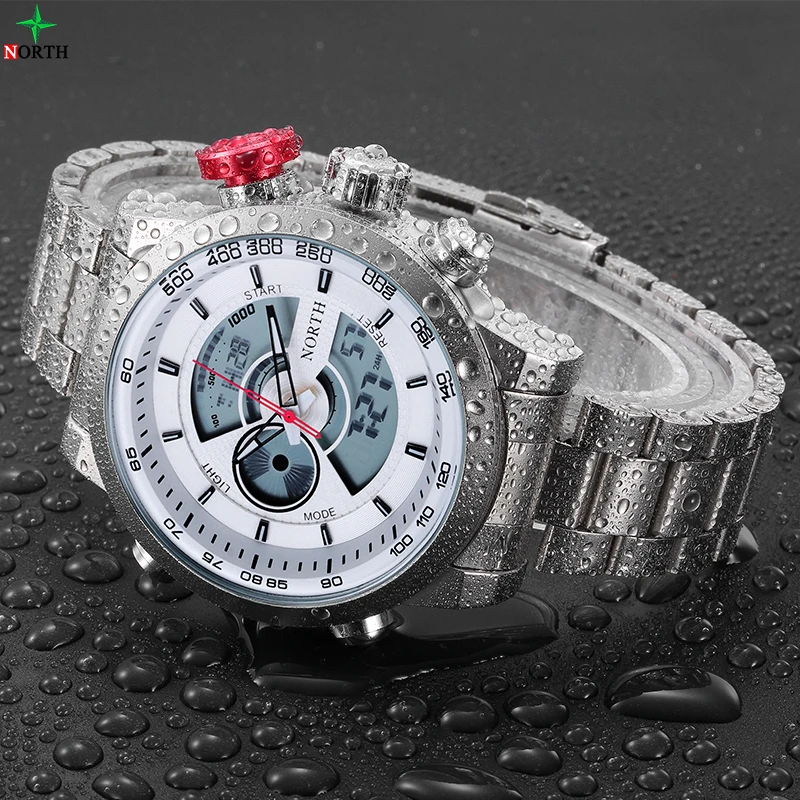 Achat NORD Hommes Montre de Sport Multifonction Numérique LED Affichage Analogique Mâle Horloge Etanche Décontracté Militaire Quartz Sport Montre Bracelet Hommes Pas Cher En Ligne