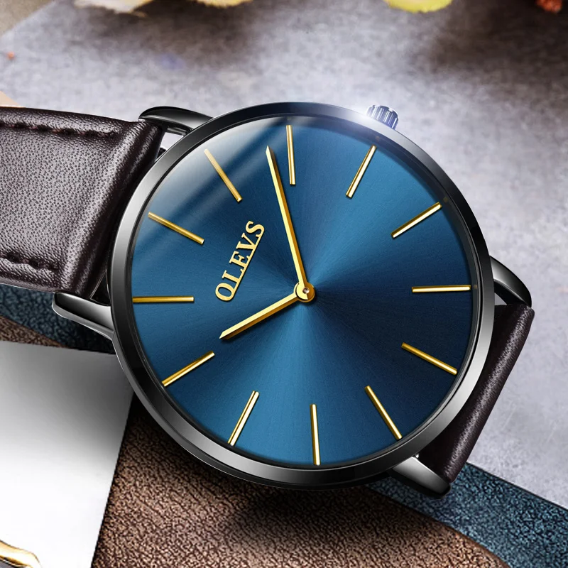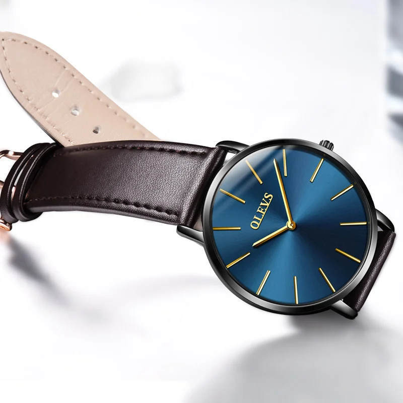 Acheter Meilleur Hommes Montres 2018 de luxe marque Olevs Quartz en cuir minimaliste Noir bracelet Ultra Mince Montres Étanche Haute Qualité Relogio Pas Cher En Ligne.