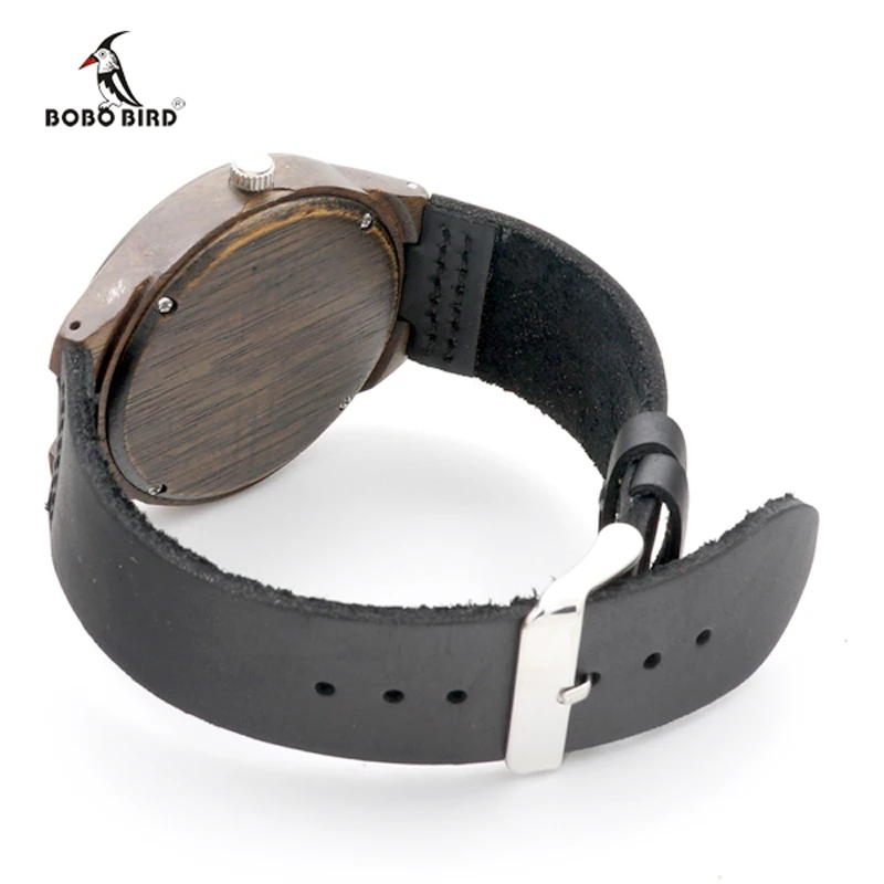 Acheter 2017 Marque BOBO OISEAU Noir Bois Montre Hommes En Cuir Bande Luxe Cadeau Montres relogio masculino C F04 Pas Cher En Ligne