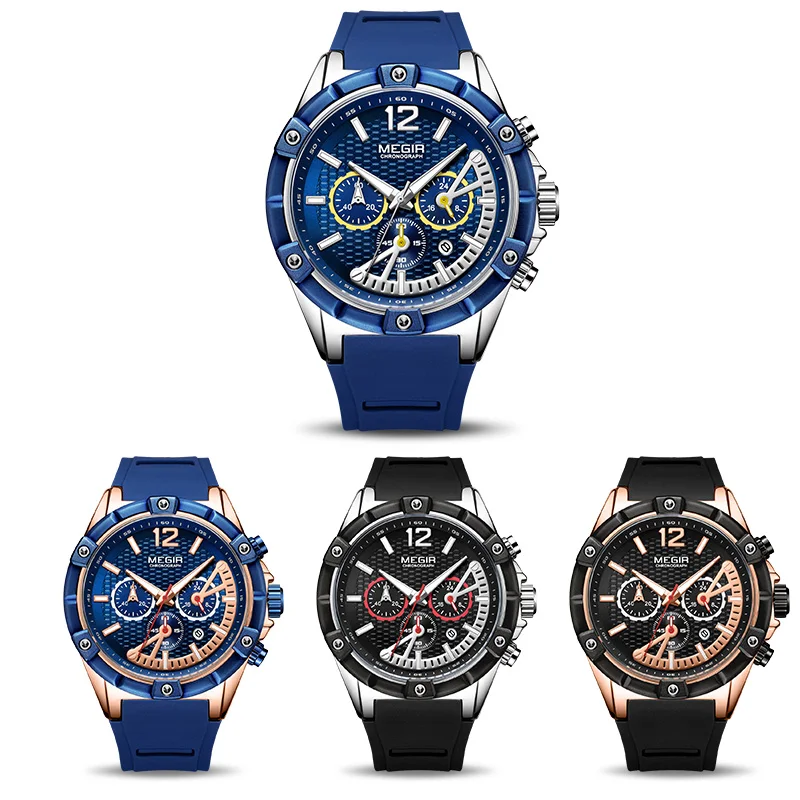 Achat MEGIR Chronographe Sport Hommes Montre Silicone Creative Quartz Montres Hommes Horloge Heure Armée Militaire Montres Relogio Masculino Pas Cher En Ligne