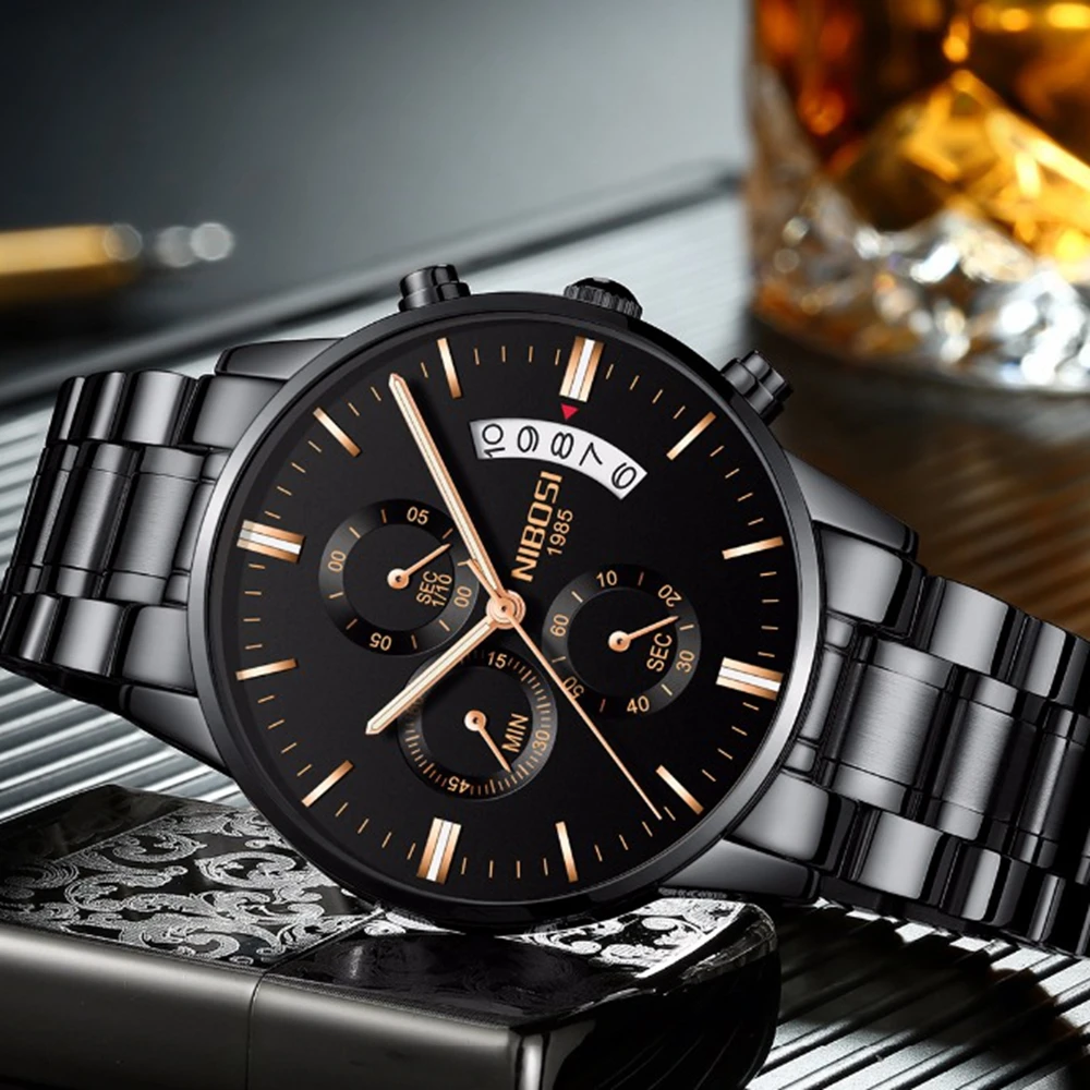 Vente Meilleur NIBOSI Montre Hommes De Luxe Célèbre Montres Top Marque Hommes de Mode Casual Robe Or Montre Militaire Quartz Horloge Montres Saat Pas Cher En Ligne.