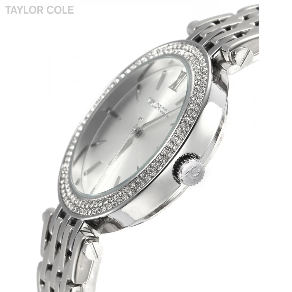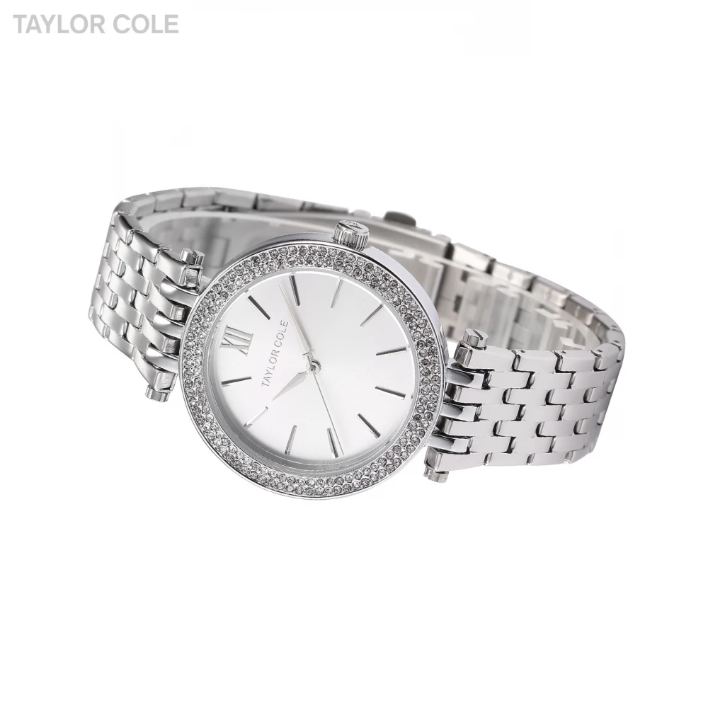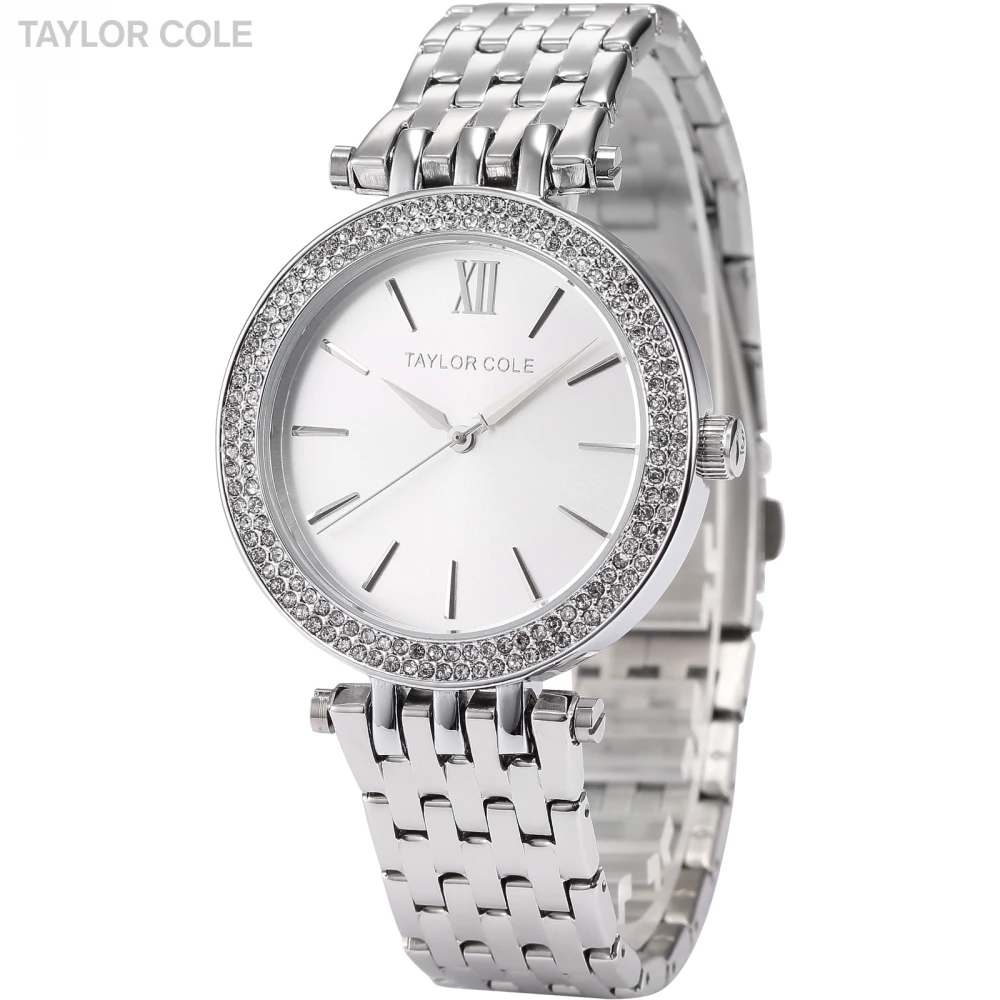 Vente TAYLOR COLE Femmes Robe Montres Relogio Feminino Argent Strass Bracelet En Acier Inoxydable Horloges Vrouwen Quartz Montre TC003 Pas Cher Prix