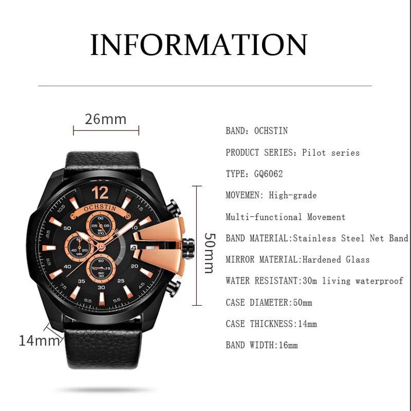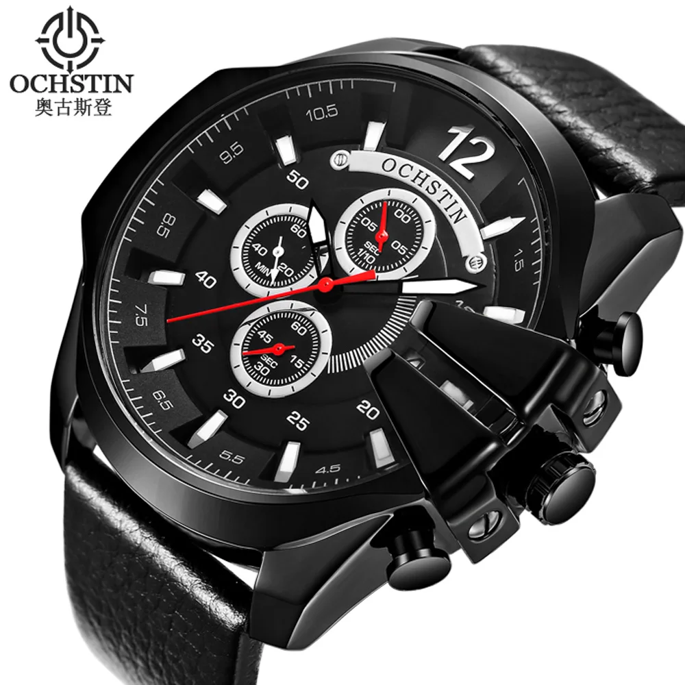 . Acheter OCHSTIN Sport Montre Hommes Marque De Luxe En Cuir Véritable Militaire Chronographe Hommes Montre Bracelet À Quartz Montre Relogio Masculino 6062RG Pas Cher Prix.