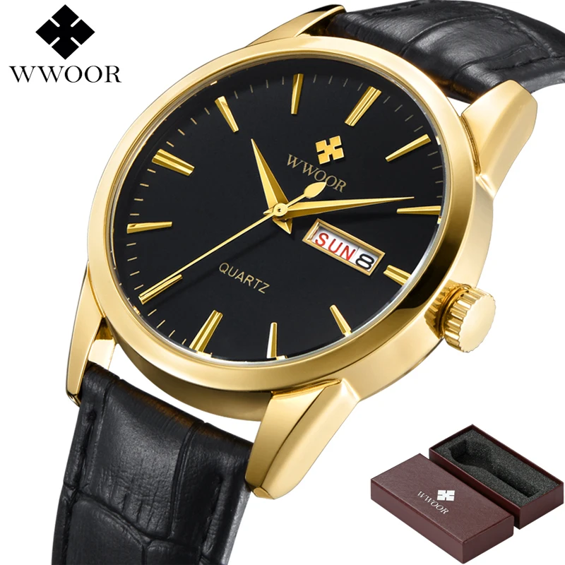 Achat Hommes Montres Top Marque Date Jour Véritable En Cuir Horloge De Luxe Or Montre Sport Hommes de Quartz de Sport Montre Bracelet Relogio masculino Pas Cher En Ligne
