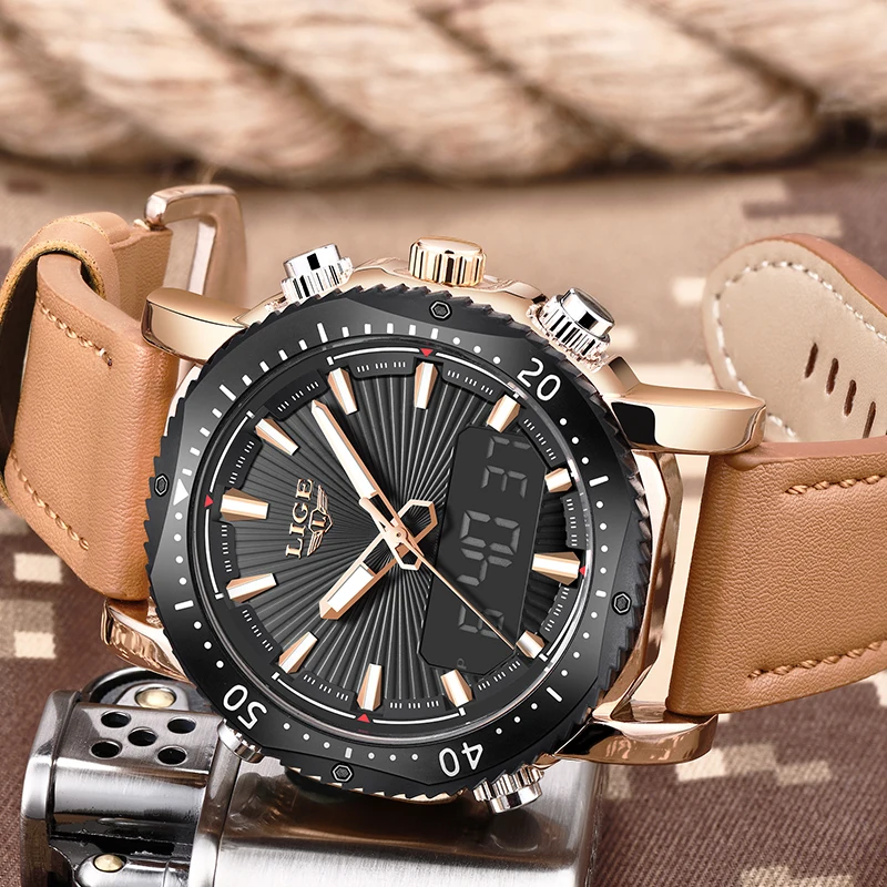 Achat LIGE Hommes de Montres De Luxe Marque Sport Montre Hommes LED Numérique Étanche En Cuir Quartz Montres Homme Horloge Relogio Masculino + boîte Pas Cher Prix
