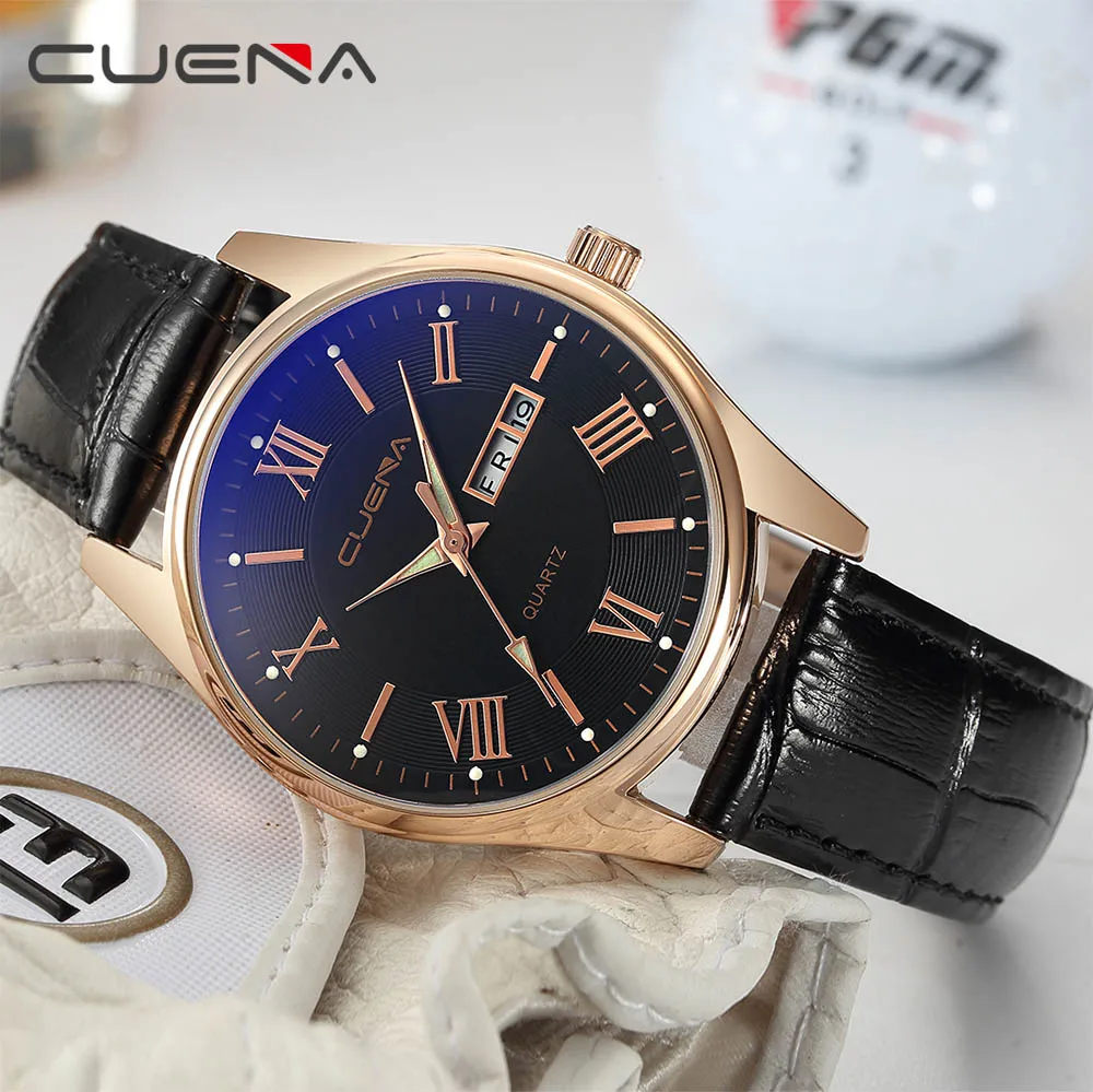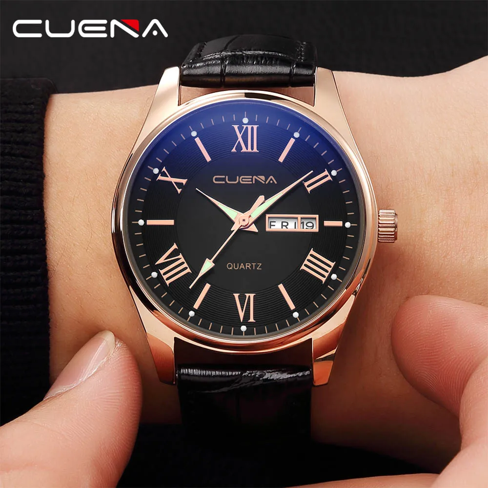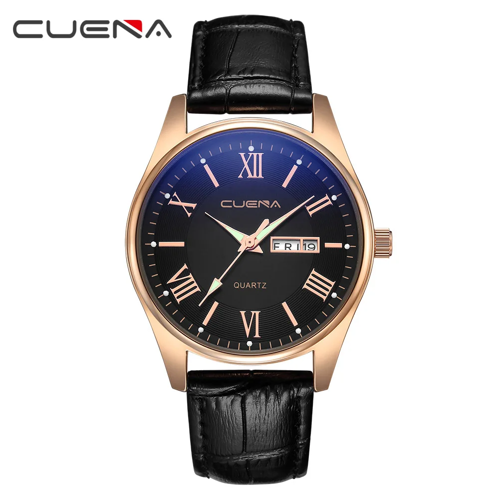 Acheter Meilleur CUENA Quartz Montres Hommes Lumineux Mains Semaine Affichage Calendrier Véritable Bracelet En Cuir Étanche Montres Hommes Montre De Mode 2018 Pas Cher En Ligne.