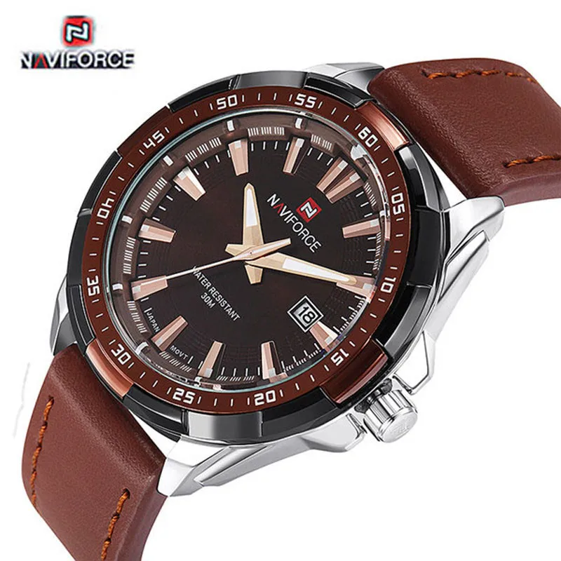 Achat Hommes Montres Top Marque De Luxe NAVIFORCE homme Sport Montre À Quartz Étanche Montre Bracelet En Cuir Mâle Horloge Relogio Masculino Pas Cher En Ligne
