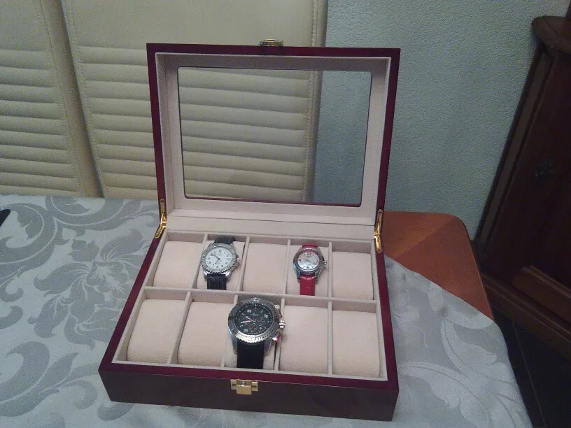 Vente 10 fentes Présentoir de Montre En Bois Boîte En Bois Montre Boîte De Rangement Avec Serrure De Mode Montre En Bois De Luxe Cadeau Bijoux Pas Cher En Ligne