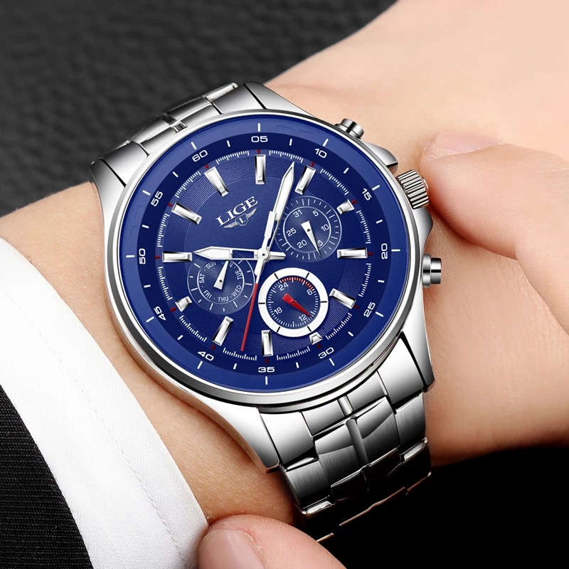 . Achat LIGE Montres Hommes Marque De Mode Multifonction Chronographe À Quartz Montre Homme Militaire Sport Montre Bracelet Homme Horloge Relogio Masculino Pas Cher En Ligne.