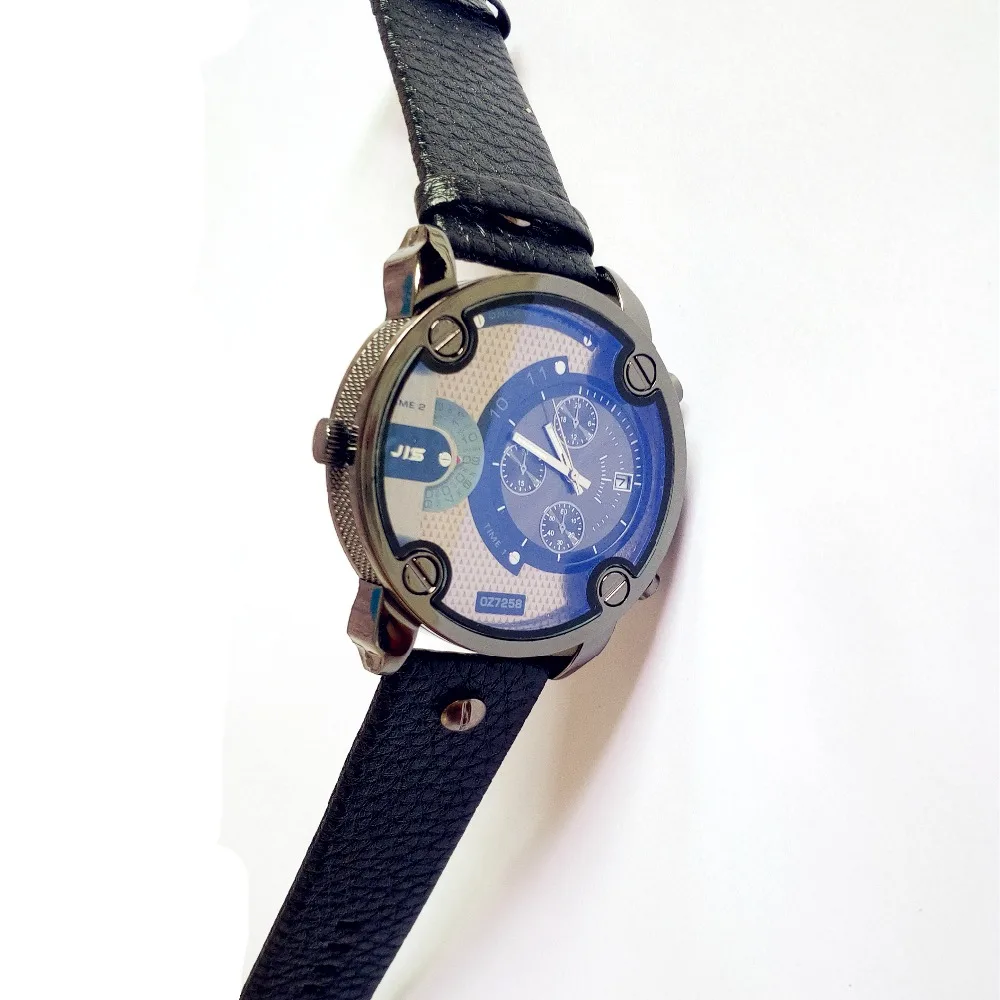 Achat 2018 Nouveau Verre Bleu Grand Cadran Noir En Cuir Quartz Hommes Montres De Mode et Montre décontractée Sports Porte Montre Bracelet Militaire relojio Pas Cher En Ligne