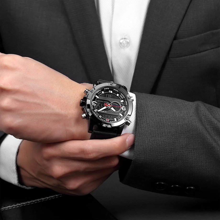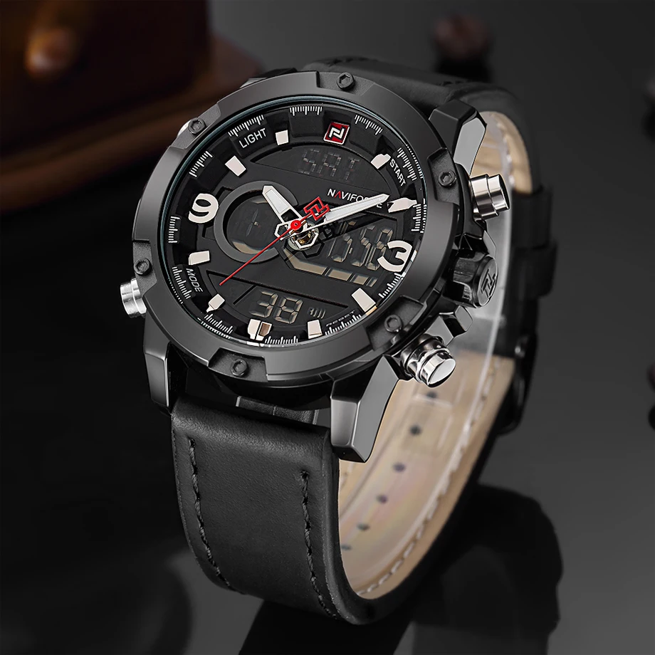 Acheter NAVIFORCE Hommes Montres De Mode Casual Sport En Cuir Noir Montre Homme Horloge Homme Armée Militaire Montre À Quartz Relogio Masculino Pas Cher Prix